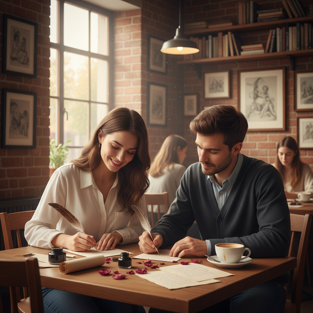 - Wspólne pisanie (np. opowiadań, poezji) jako forma wyrażania uczuć.